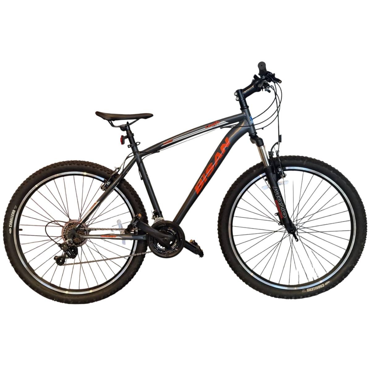 - Modelis: Kalnu velosipēds Bisan LEON V Matt Grey/Orange (Rata izmērs: 27.5 Rāmja izmērs: 19)